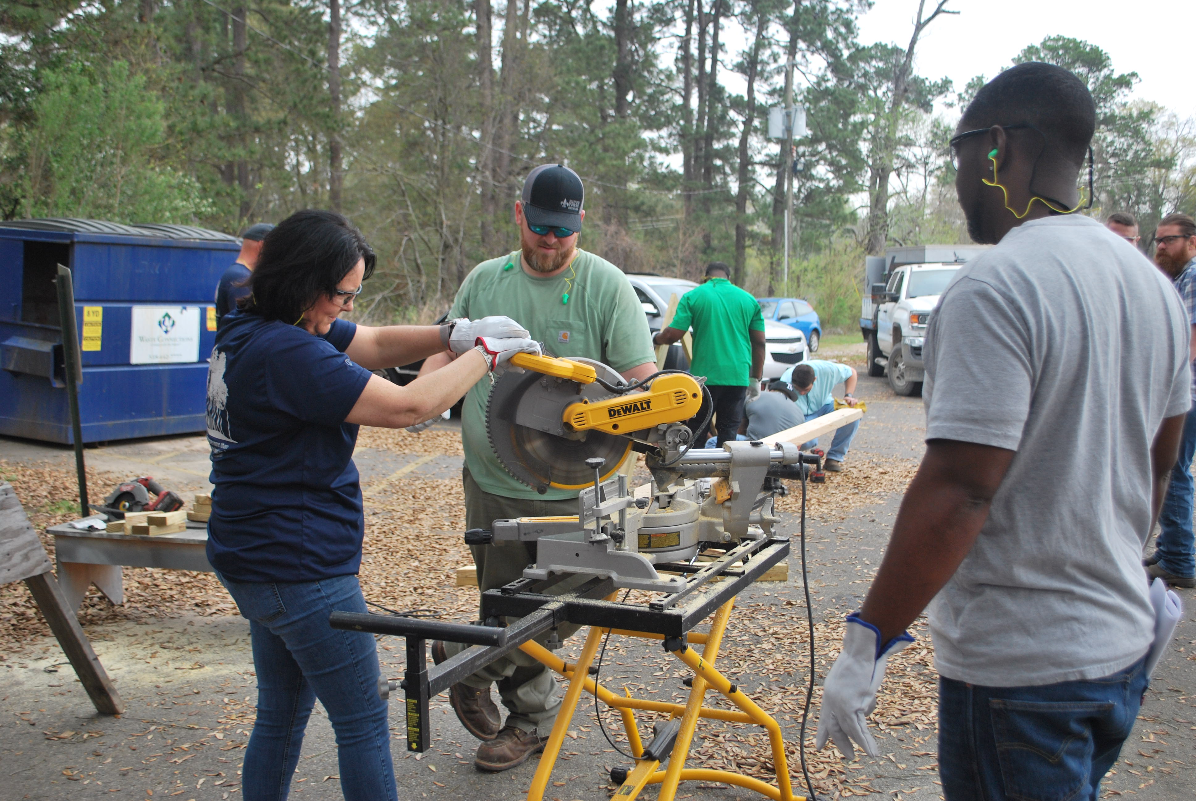 Roy O Martin Volunteers building a chicken coop for Pineville Elementary.